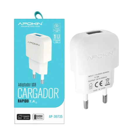 🔌 Cargador adaptador de red USB 1A – Color blanco – Modelo AP-30735 – Compatible con Apple, Samsung, Xiaomi, Huawei y más