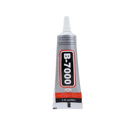 Pegamento transparente B-7000 en formato de 50 ml con boquilla aplicadora. Adhesivo extrafuerte, flexible y resistente al agua, ideal para reparaciones de móviles, electrónica y manualidades. Envío desde España.