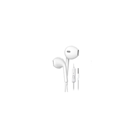 Auriculares manos libres con cable de 1.2m, jack 3.5mm, micrófono y control de volumen, en color blanco, cómodos y versátiles para uso diario.