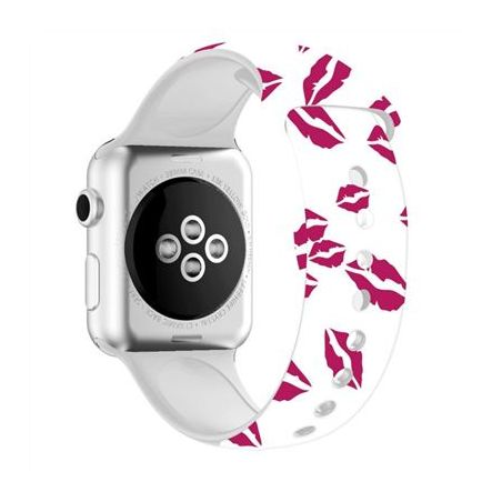 – 1 x Correa de silicona compatible con Apple Watch (blanca con besos fucsia)