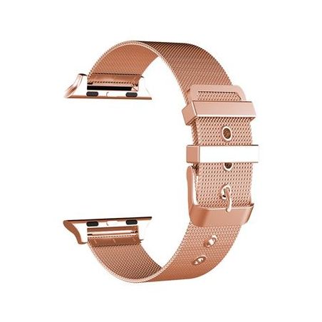 – 1 x Correa metálica con hebilla color oro rosa compatible con Apple Watch (38 / 40 / 41 mm)